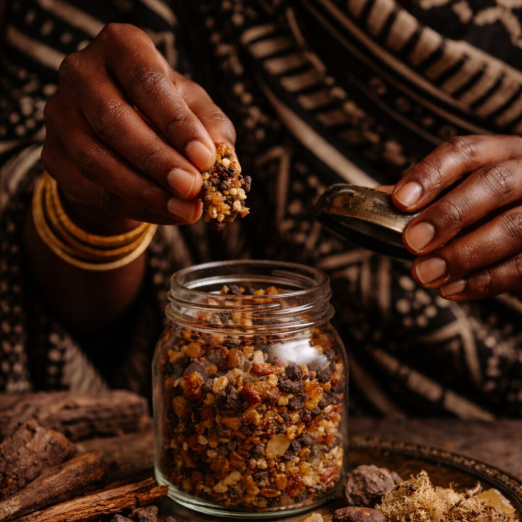 Ce que l’on nomme wusulan au Mali — ou thiouraye au Sénégal — est un parfum traditionnel fait maison, né d’un mélange savant de gommes, résines, racines, bois, écorces, fruits, mousses, lichens, feuilles et autres matières premières naturelles. Selon les habitudes et le rendu recherché, la composition est complétée par l’ajout au pilage de parfums alcoolisés importés ou de parfums huileux.